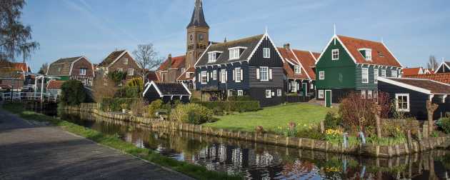 Marken est, comme beaucoup d’endroits aux Pays-Bas, un ancien village de pêcheurs. Au XIIIe siècle, le village fut séparé du continent à coups de fortes tempêtes ce qui obligeât les habitants à construire leurs maisons sur pilotis, mais aussi de vivre de manière autonome grâce à la pêche, étant désormais coupé des autres villages environnants par l’eau. Ce n’est que bien, bien plus tard, dans les années 1950, qu’une digue fut construite pour rattacher le village à la terre, transformant Marken en presqu’île. Pour autant, même si la pêche n’est plus l’activé principale, le village a gardé quasiment intacte l’ambiance de l’époque : toutes les constructions sont en briques avec du bois noir, bleu marine ou vert bouteille, le tout joliment surligné de blanc. C’est un mini village de “poupée” comme certains aiment à le dire. Malgré la digue, le village ne se visite qu’à pied, ou en vélo : les voitures et les bus ont obligation de se garer à l’entrée, ce qui rend la découverte de l’île encore plus authentique et agréable !